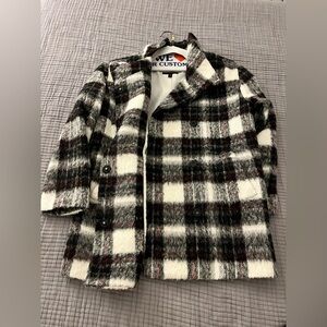 Has button closure on inside of jacket as pictured. Two pockets on outside.