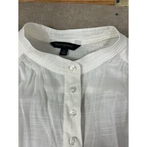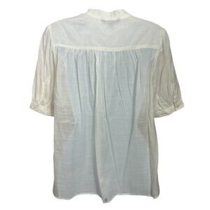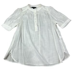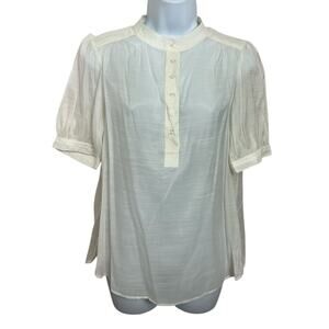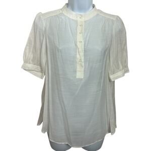 Banana Republic Ivory 1/2 Button Front Blouse Sz Small Short Sleeves Semi Sheer