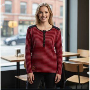 The Banana Republic Men's Large Ivory Core Temp Waffle Knit Thermal Henley Shirt is a versatile and comfortable piece for men's collection. Made from a blend of polyester and cotton, this long sleeve shirt features a Henley neckline and a thermal accent for added warmth. The solid ivory color and classic design make it a stylish choice for relaxation or sleepwear in the winter, fall, or spring seasons.