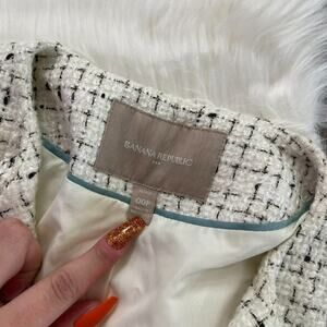 Banana Republic Ivory Tweed Boucle Motorcycle Jacket 00 Petite