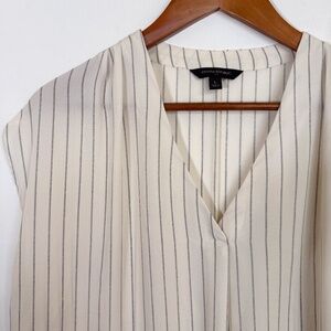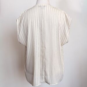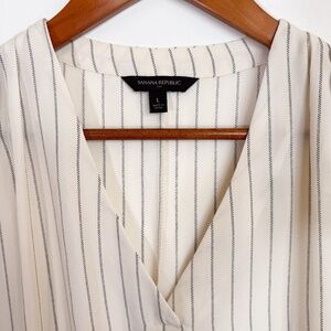 Banana Republic Ivory blouse classic v neck short sleeve pin striped size large