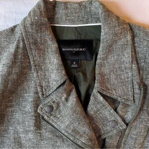 Banana Republic Jacket Women 8 Rifle Green Linen Blend Moto Long Sleeve