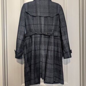 Banana Republic Jacket Womens PXS Gray Black Windowpane Flannel Belted Pea Coat