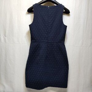 This sheath dress by Banana Republic boasts a textured jacquard pattern in a timeless navy blue. Its sleeveless design and knee-length cut make it a sophisticated choice. Fully lined for comfort, this dress blends style and practicality for formal evenings or refined gatherings.