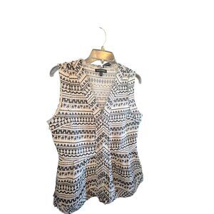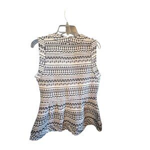 Banana Republic Jacquard Tweed Peplum Tank Sleeveless Top Cream Black Size 10