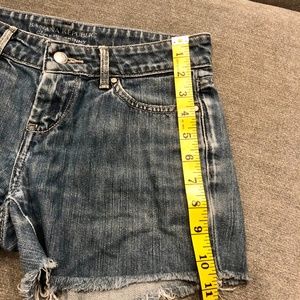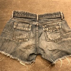 These are the perfect shorts! The jean is perfectly broken in making them soft and super comfortable. There's plenty of life left in these. Worn with Love, Washed Cold Laid Flat to Dry. The Label Says 0P but they fit more like 1-3.