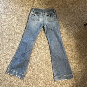These Banana Republic Jeans are super soft & super cool! Slightly Stretchy and nicely broken in to ensure the ultimate comfy jeans. They have a Double Button Fly Closure with zipper, Flap Pockets in the back, Wide Leg, boot cut, bell bottoms with cute yellow thread accents. You're going to love them!