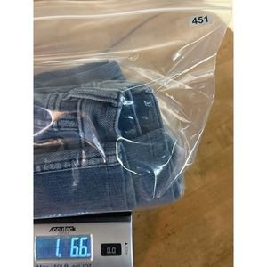 Check pictures, one leg has a distressed area not sure if its part of the jeans or not, but its noted.
