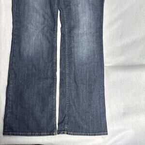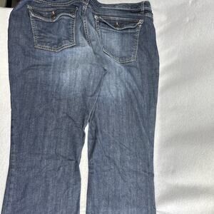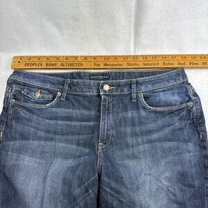 Banana Republic Jeans Womens 32L Blue Denim Flare Leg Flap Pockets Low Dark Wash