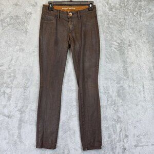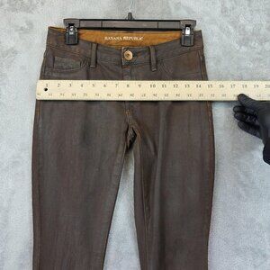 Banana Republic Jeans Womens Petite 24 Brown Skinny Coated Denim Stretch Zip Fly