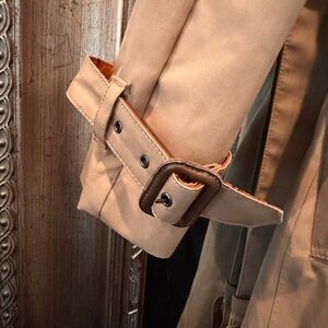 Like new Banana Republic Journey Trench Coat size XS. In excellent condition, rarely worn and I just freshly cleaned it. I’ve been hesitant to part with this, but I truthfully don’t wear it much. So time to pass on to someone who will. This is well structured and beautifully made. The inside lining is gorgeous and adds an additional pop of color. Belt and rain shield are all intact. The one button (last photo) needs a quick tightening. Roughly 41” in length. Pit to pit is roughly 16-17”.