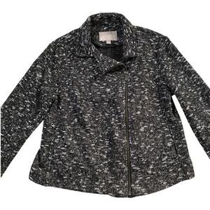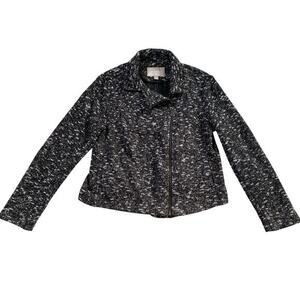 Banana Republic Knit Zippy Moto Jacket Black White Textured - 14