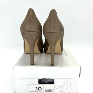 Banana Republic Kristen Stiletto Pumps Size 10 Taupe Metallic Leather Low Platform High Heels, New.