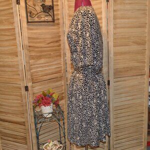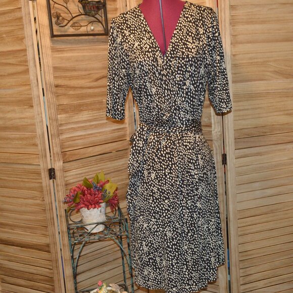 Banana Republic L Wrap Dress Black w/White Geometric Pattern