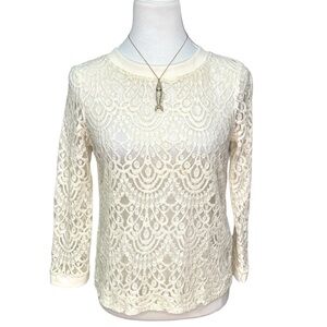 Cream colored lace with ribbed neck & sleeves