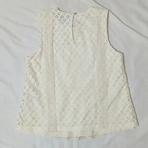 Banana Republic Lace Overlay Crochet Sleeveless Blouse, Color Cream Size XS