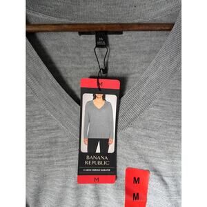 Banana Republic Ladies Merino Wool V-Neck Sweater Gray