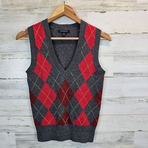 Banana Republic Lambswool Argyle Sweater Vest Gray Red Preppy Academia Size XS