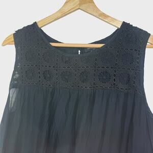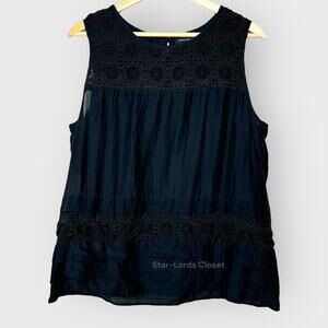 Banana Republic Large Black Lace Top Silk Blend Sleeveless Eyelet Casual Office