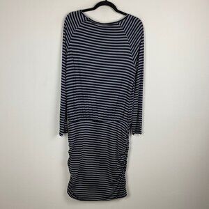 Banana Republic Large Bodycon Dress Long Sleeve Jersey Black Gray Striped NWT