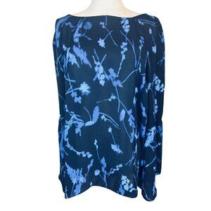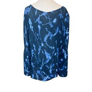 Banana Republic Large Flowy Blue Floral Print Long Bell Sleeve Blouse