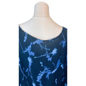 blue floral blouse, long sleeve blouse, Banana Republic blouse, women's blouse, floral print top, large size blouse, lightweight blouse, polyester blouse, navy blue top, casual blouse, floral pattern clothing, Banana Republic top, women's large clothing, flowy, feminine, dainty