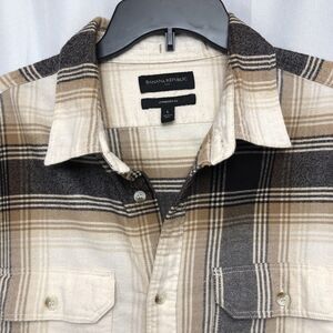 Men's Banana Republic Brown Plaid Soft Flannel Button Down Standard Fit Shirt