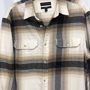 Banana Republic Large Standard Fit Brown Plaid Long Sleeve Flannel Button Shirt