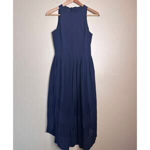 Banana Republic Laser-Cut Curved-Hem Midi Dress Navy Blue Size 0.