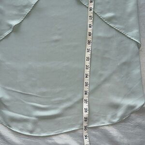 Size Small. Excellent condition. Banana Republic Tank in Dusty Teal-Soft Mint hue. Spring or Summer lightweight Floaty poly crepe top with crossover back tiered styling. Scoop neck, rounded hem and Sleeveless. Approximate flat measurements in pics.