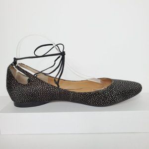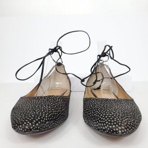 black gray spotted calf hair ballet flats ankle ties