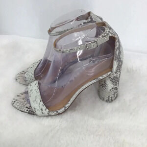 Nice Bana Republic leather embossed faux reptile print ankle strappy sandal.Color Gray & White