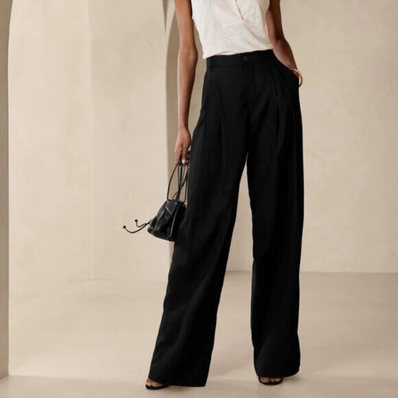 Banana Republic Lena Wide-Leg Linen-Blend Pant size 2 Black