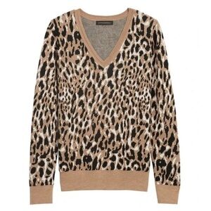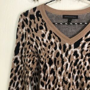 Banana Republic Leopard Merino Wool Blend V-Neck Sweater Women’s