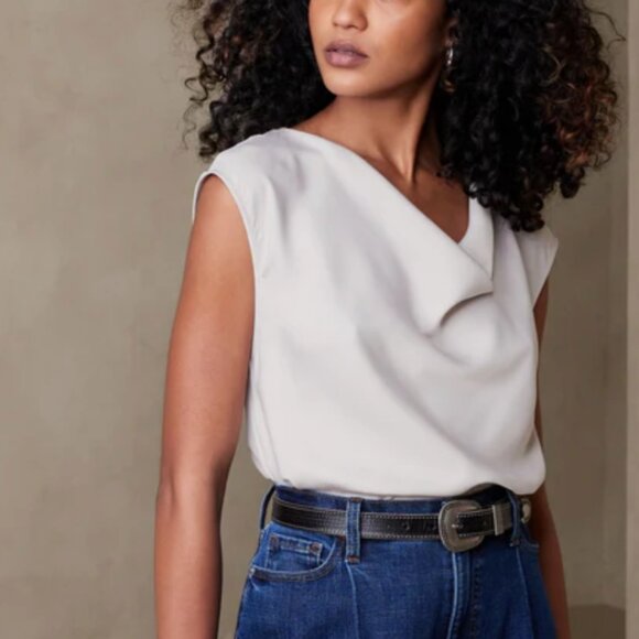 Banana Republic, BR, sleeveless, Blouse, Top, Cowl Neck, Neutral, Grey, Graym Office, Workwear, Business Casual, Casual, Pullover, Lightweight, Flowy, Contemporary, Modern, Chic