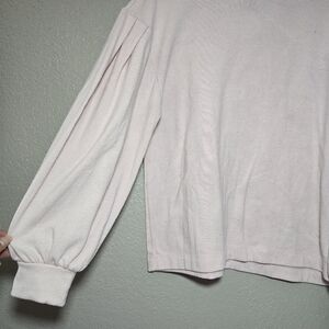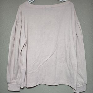 This Banana Republic long-sleeve top is a timeless and versatile piece, perfect for casual or dressy occasions. It features a soft fabric with a flattering relaxed fit, puffed sleeves with fitted cuffs, and a wide neckline for an effortlessly chic look. The light pink hue adds a feminine touch, making it easy to pair with jeans, trousers, or skirts.