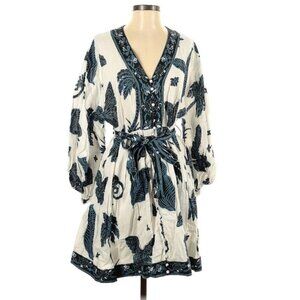 super fun Banana Republic 100% Linen Ballon Sleeve Mini Dress with Butterfly, Palm Tree, Greece Prints Throughout.