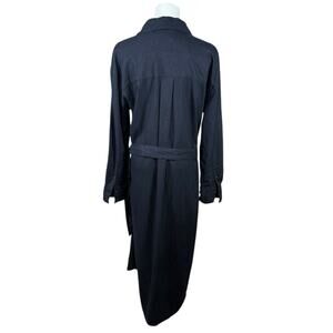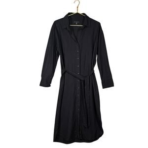 Banana Republic Linen Belted Shirt Dress Black Button Front Midi Long Sleeve | M