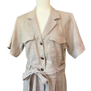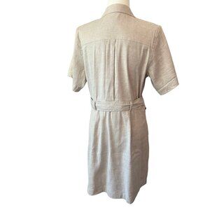 Banana Republic Linen Blend Belted Shirt Dress Khaki Beige Button Front Size 12