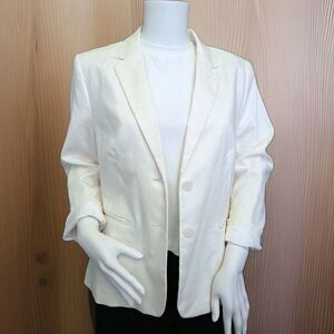Banana Republic Linen Blend Blazer Shrunken Style 3/4 Sleeve OffWhite Women's 10