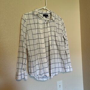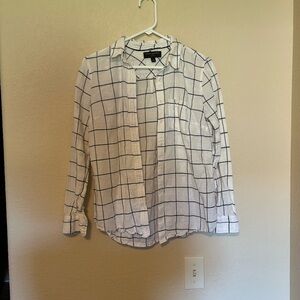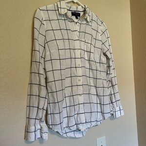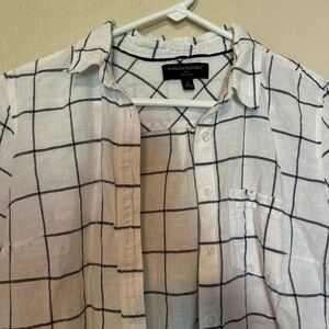 Banana Republic Linen Blend Checkered Grid Plaid Button Down Blouse