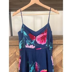Banana Republic Linen Blend Dress Blue with Tropical Floral Print Size 0