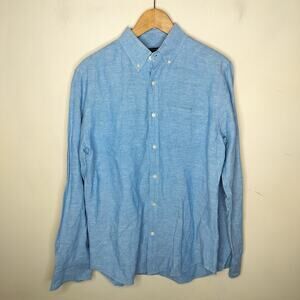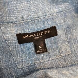 Banana Republic men's blue linen cotton sleeve button down shirt. Size M. (23216)