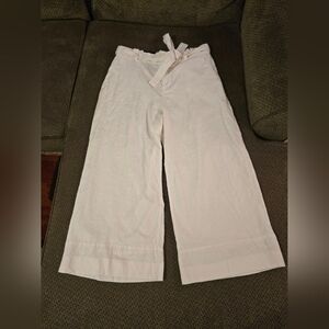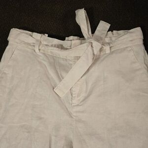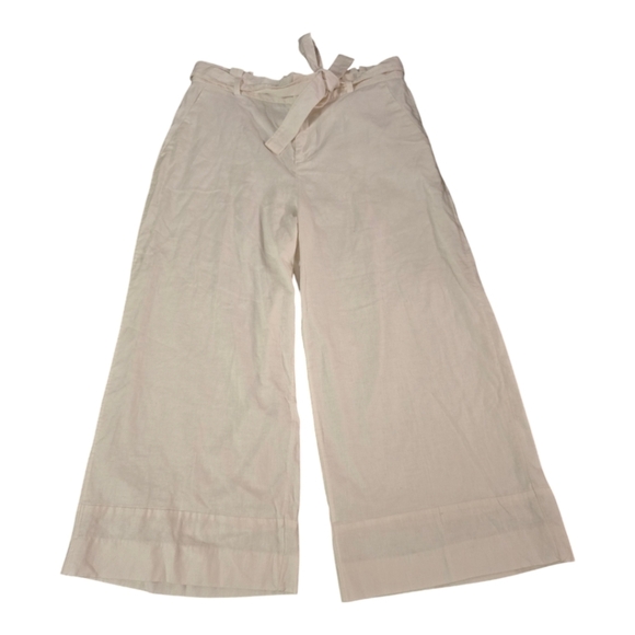Banana Republic Pants Womens 14 White Blake Cropped Mid Rise Belted Linen Blend