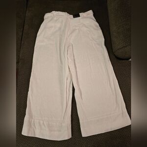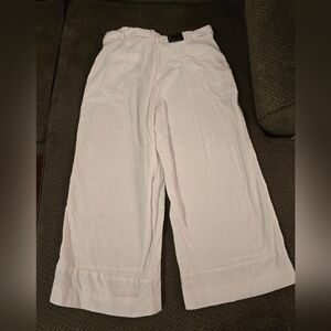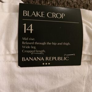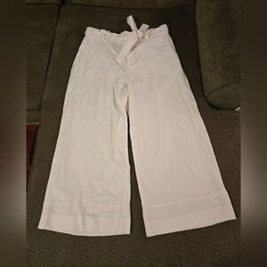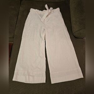 Banana Republic Linen Pants Womens 14 White Blake Cropped Mid Rise Belted