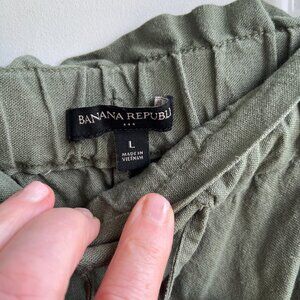 Banana Republic linen blend shorts offer comfort with a pull-on paperbag style. Ideal for casual outings in sage green, these shorts combine style with practicality.