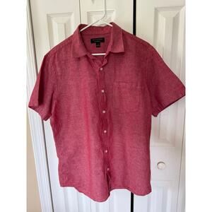 Banana Republic Linen Shirt Red Short Sleeve Camden Fit Men's L