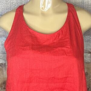 Banana Republic Linen Trapeze Sleeveless Dress. Style# 404091. Size 6. Color ~ Blooming Red. Sleeveless. High low hem. Trapeze silhouette. Cut out back. Side zip. Side pockets. Excellent condition. Measurements are in the pictures.