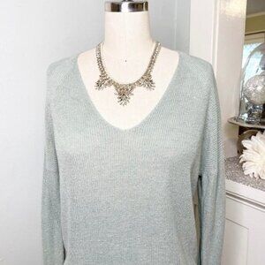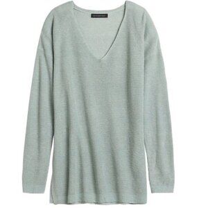 Banana Republic Green V Neck Linen Sweater Soft Cozy Spring Casual Style Pale Green Pastel Light Ribbed