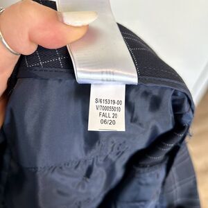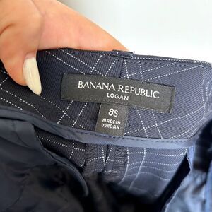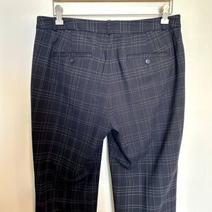 Banana Republic Logan Trouser-Fit Washable Wool-Blend Pant Womens Career Pants Size 8S Short Blue Plaid Dark Navy White Zip Closure Polyester Wool Spandex Blend 615319